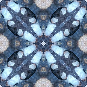 Many of you know that I like to photograph stones—especially the ones I collect along the beaches of Lake Superior. When those photographs are mirrored and repeated, the shapes turn into unexpected designs.