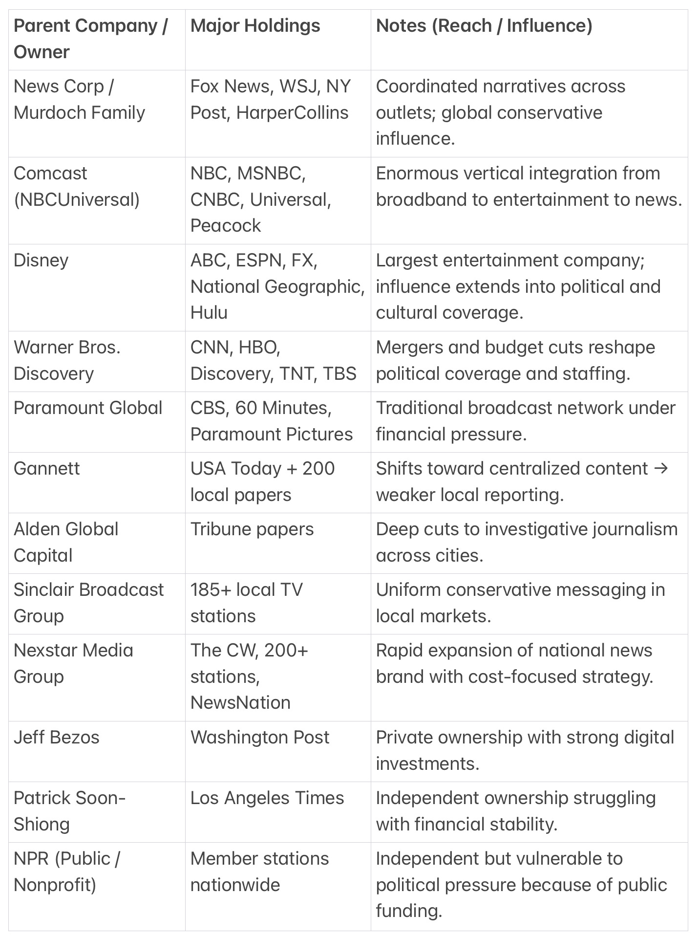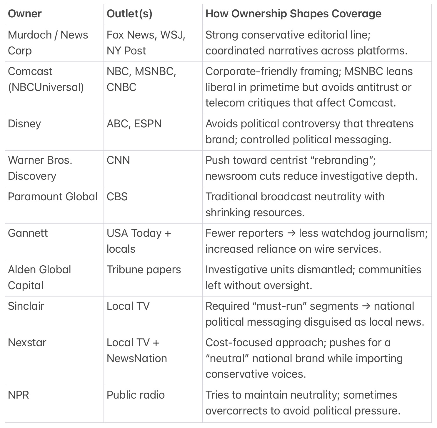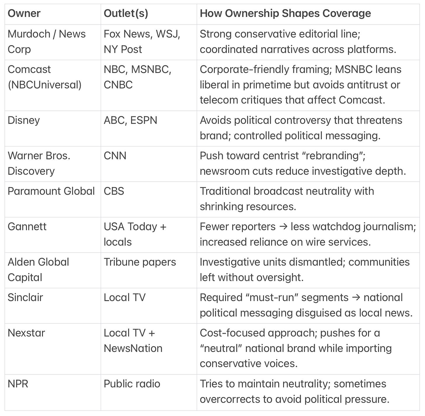 This concentration meant fewer editors, fewer fact-checkers, fewer investigative teams — and far less diversity of thought.