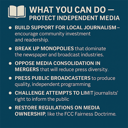 A democracy needs competing voices. A consolidated media system speaks in one.