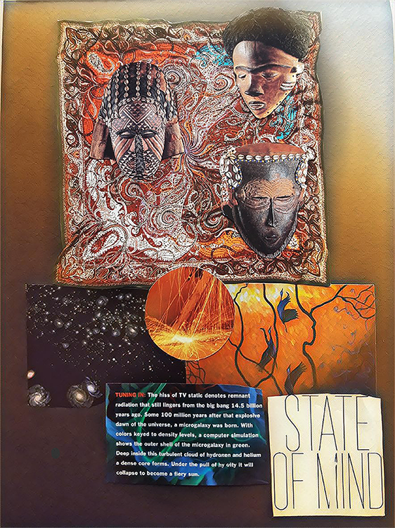 Collage assembled from found images, cosmic photography, and scientific text.