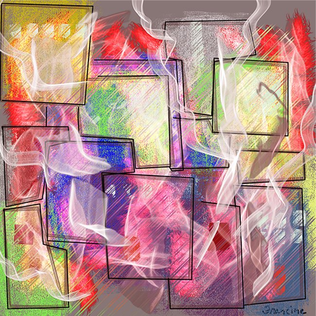Rectangles once meant to hold meaning, structure, and balance now drift through veils of smoke and color. Vanishing Order began as an exploration of form but became something closer to a mirror of the moment — a quiet portrait of systems unraveling. The boundaries blur, the colors clash and mingle, and what’s left is both unsettling and strangely beautiful.