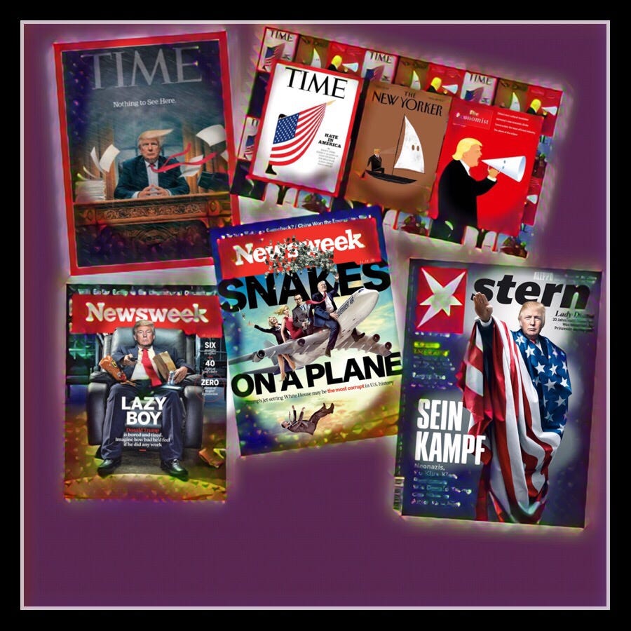 My collage of magazine covers and political cartoons during Trump’s first term — a visual time capsule of outrage, irony, and disbelief.