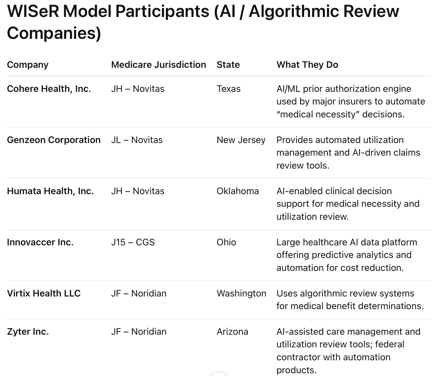 CMS recently confirmed that the WISeR pilot will operate in six states from January 1, 2026 through December 31, 2031 — and will rely on six private technology companies to perform the algorithmic reviews.